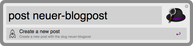 Hat man sich den Workflow installiert und angepasst, dann kann man in Alfred einfach "post" eingeben und danach der Slug für den Blogpost. Der Workflow erstellt dann den Ordner mit der richtigen Zahl davor und auch die txt-Datei wird erstellt und auch schon gefüllt.
