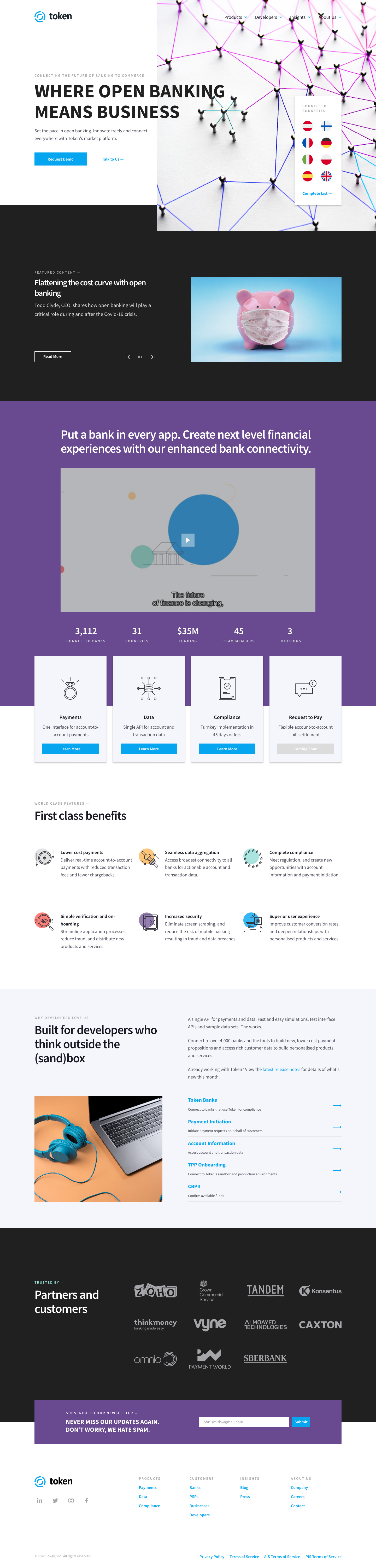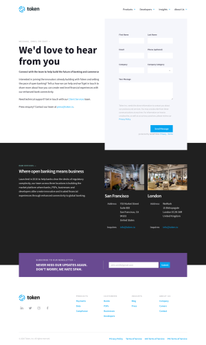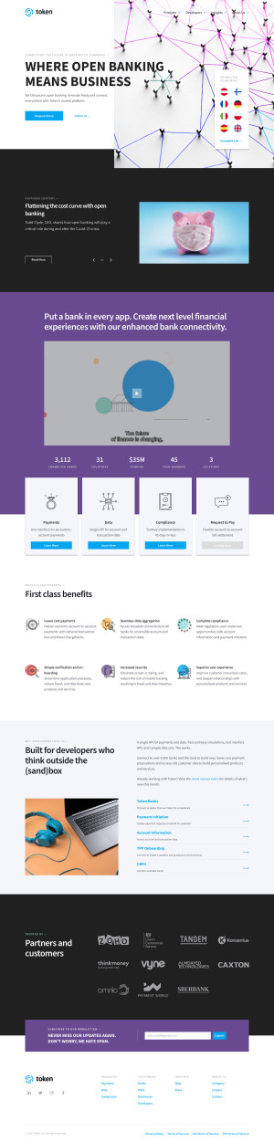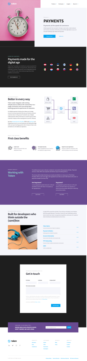 Die Website ist in Zusammenarbeit mit dem Markting-Team von Token entstanden. In den letzten Jahren hat die Website mehrere Re-Designs durchlaufen. Dabei lag der Schwerpunkt immer auf einer guten Performance und der modularen Organisation der Inhalte. Im Hintergrund ist ein eigenes Design-System entstanden, das die modulare Umsetzung auf der technischen Seite unterstützt.